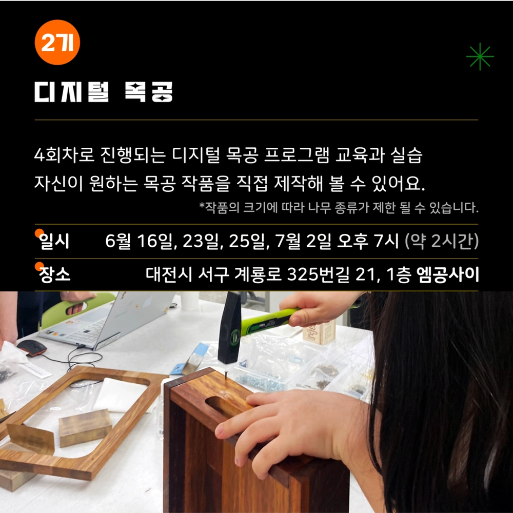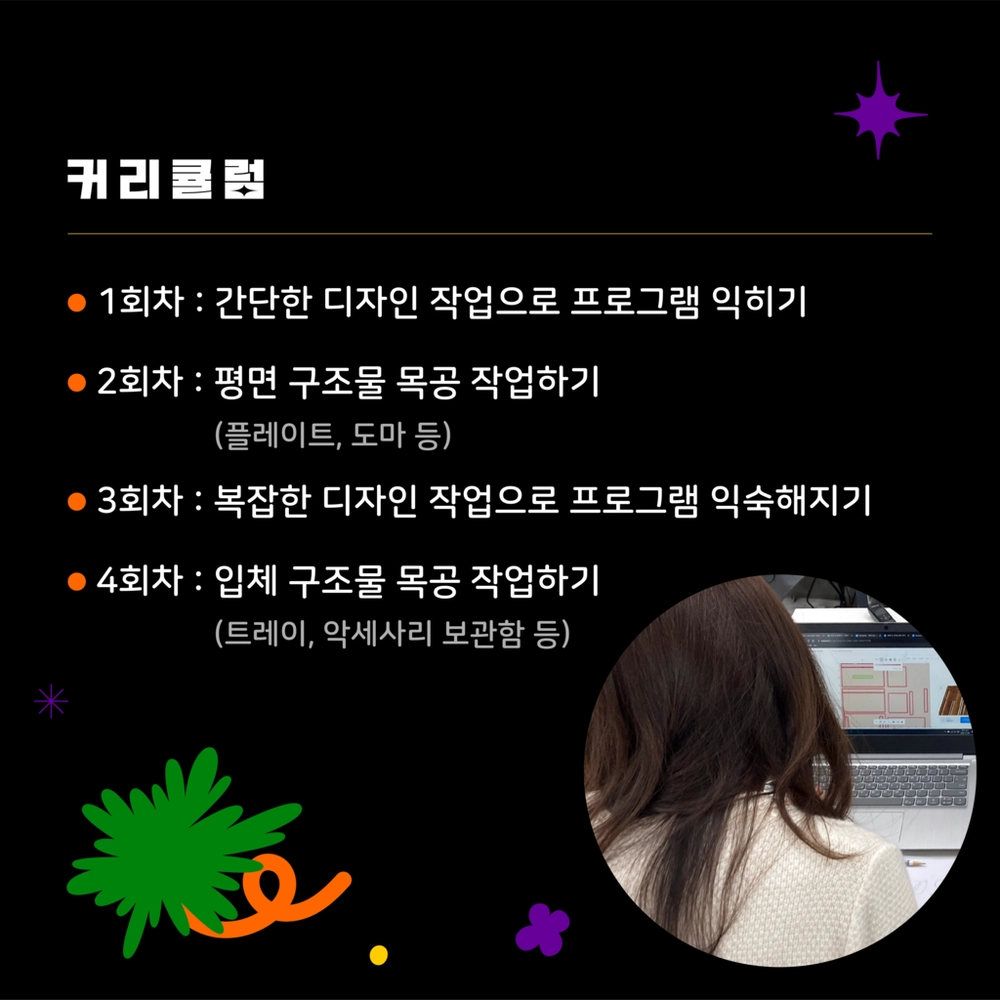 4회차로 진행되는 디지털 목공 프로그램 교육.