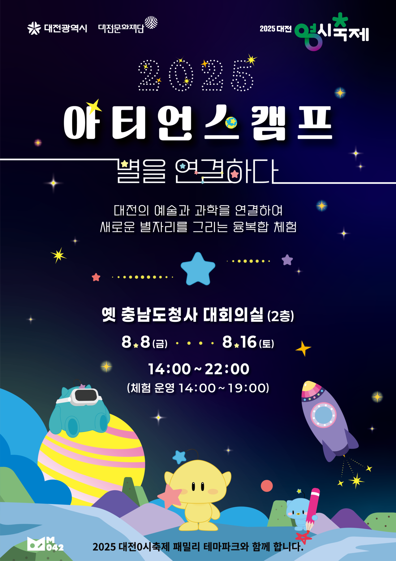 2025 아티언스 캠프에서 대전의 새로운 별자리를 함께 만들어갈 여러분을 초대합니다.
