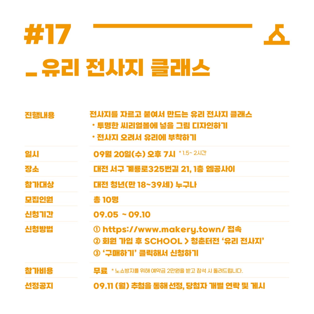 • 대전 일자리경제진흥원의 청춘터전 지원사업으로 진행되는 클래스입니다.