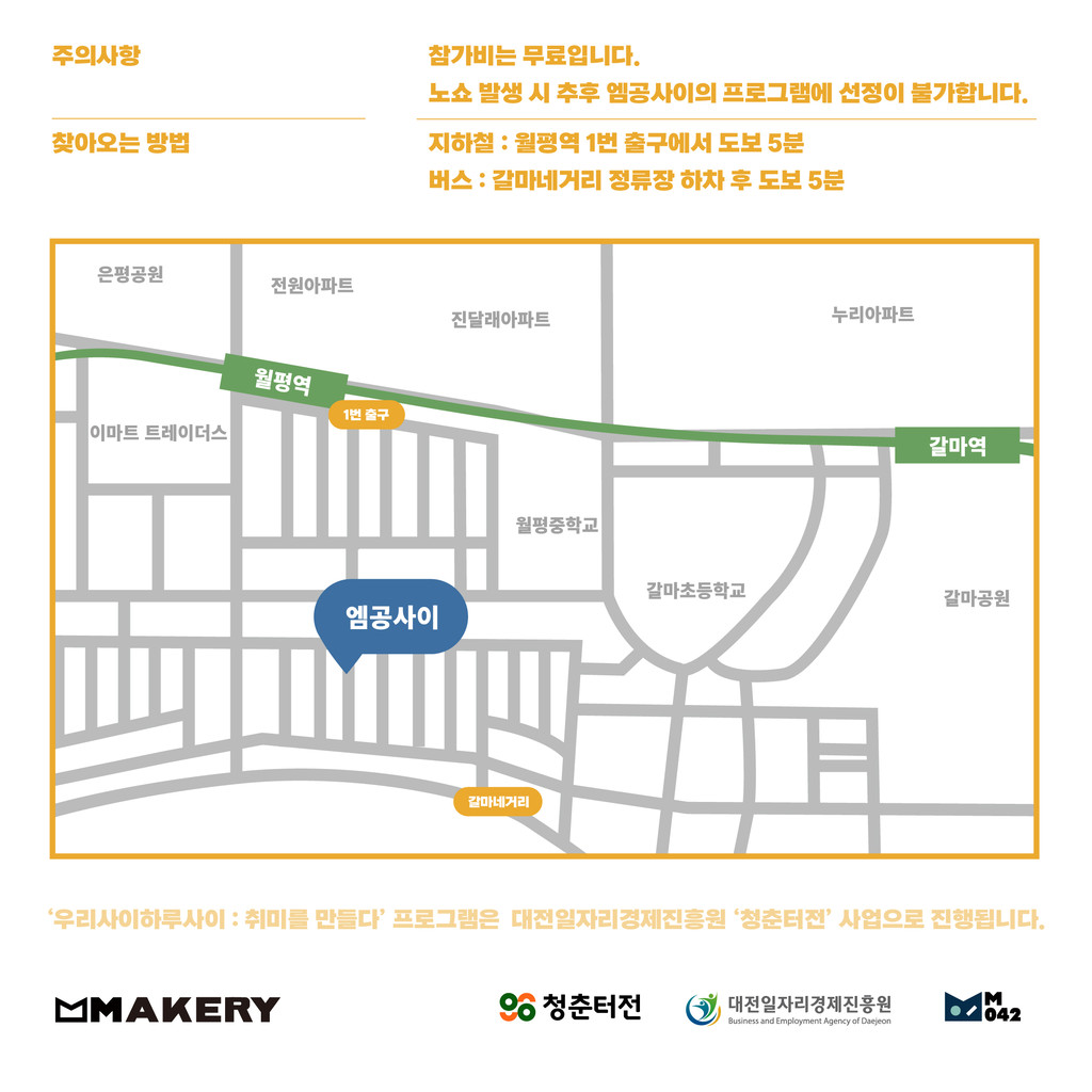 참가비는 무료이지만 노쇼발생시 추후 엠공사이의 프로그램에 선정이 불가합니다.