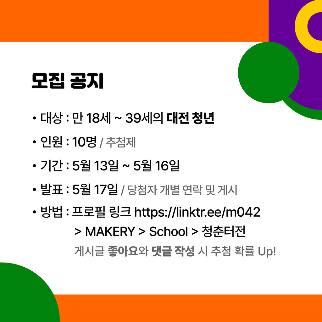 • 모집 대상 : 대전 청년 (만18세 이상 만39세 이하)