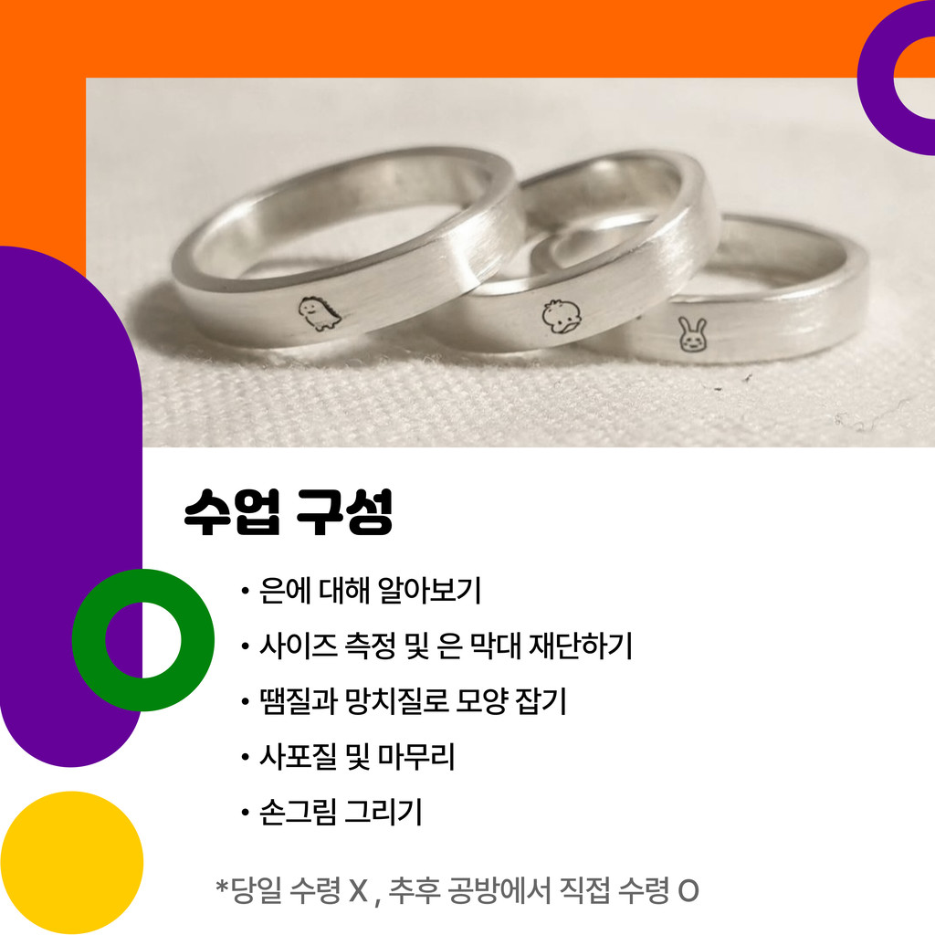 자르고 두드려서 반지를 만들고 손그림을 각인하는 은반지 클래스
