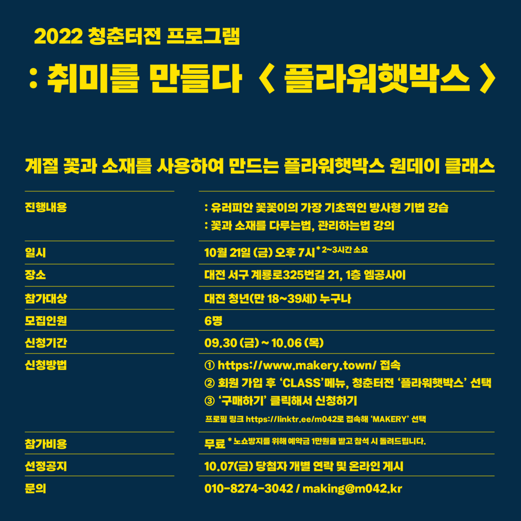 대전 일자리경제진흥원의 청춘터전 지원사업으로 진행되는 클래스입니다.
