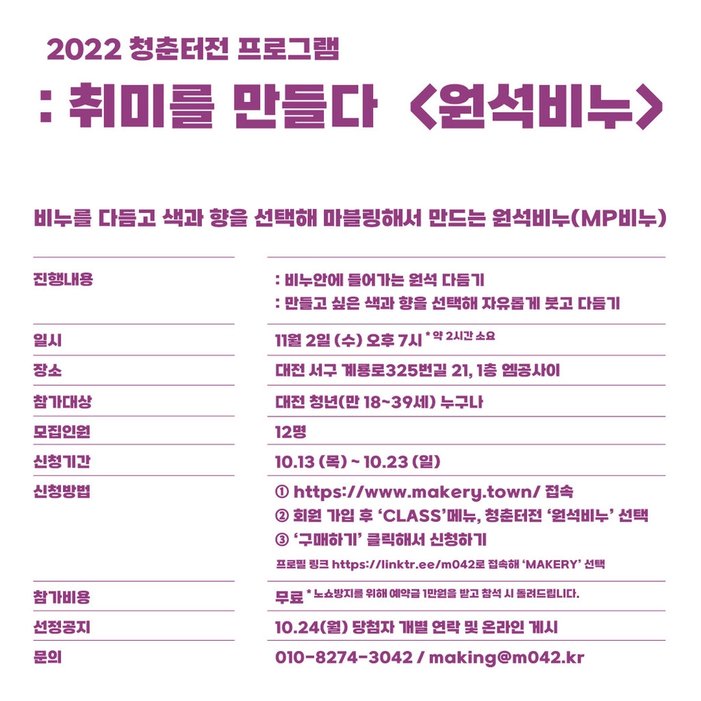 • 모집대상 : 대전 청년 (만18세 이상 만39세 이하)