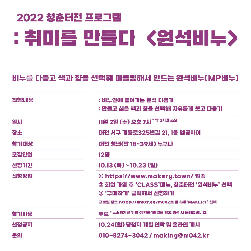 * 참가비는 무료이지만 노쇼발생시 추후 엠공사이의 프로그램에 선정이 불가합니다.