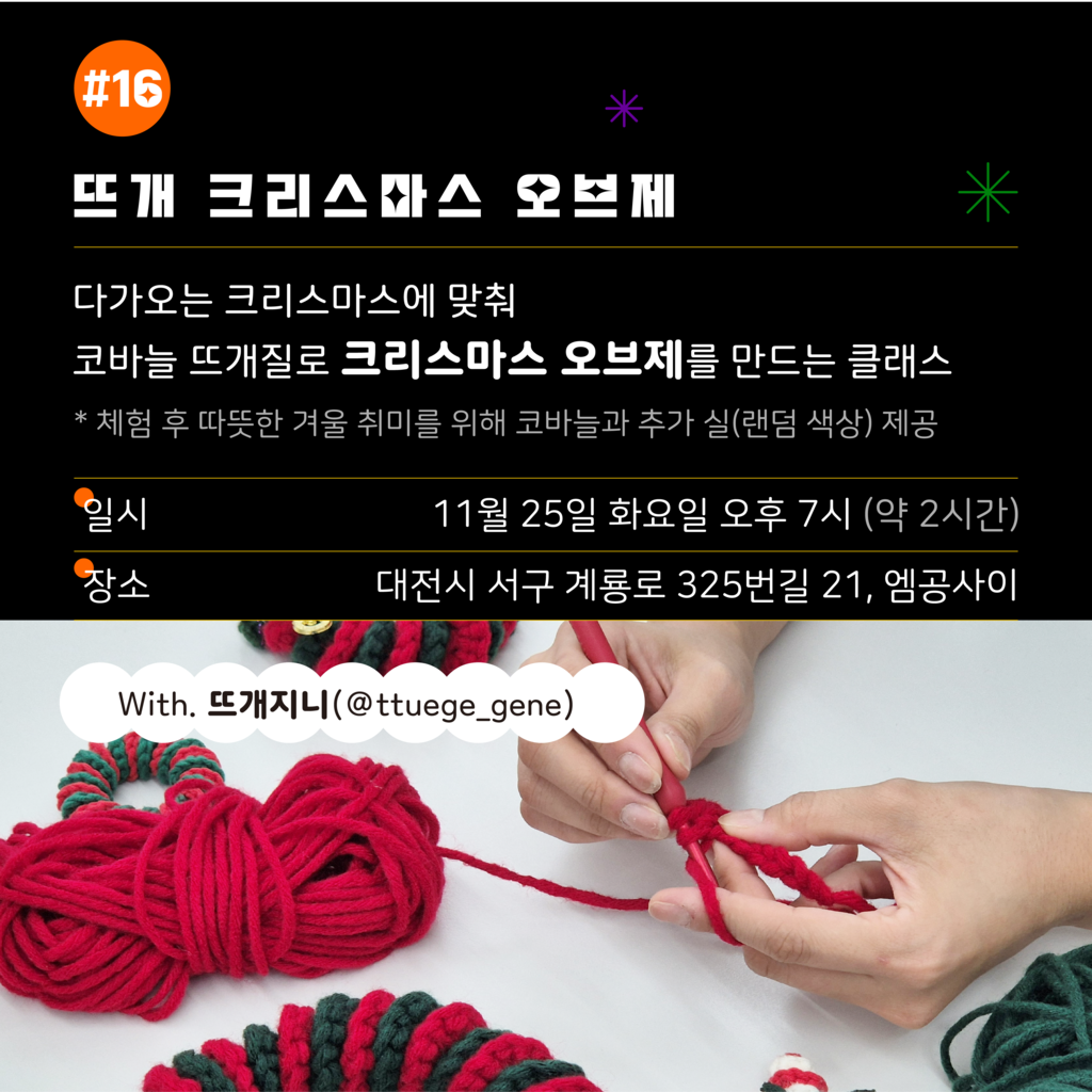 다가오는 크리스마스에 맞춰 코바늘 뜨개질로 크리스마스 오브제를 만드는 클래스