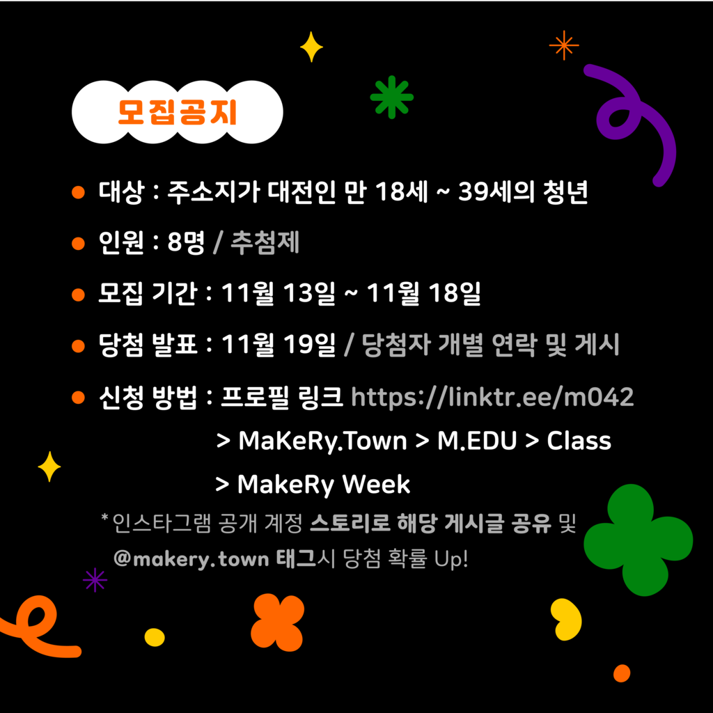 · 모집 기간 : 11월 13일 ~ 11월 18일