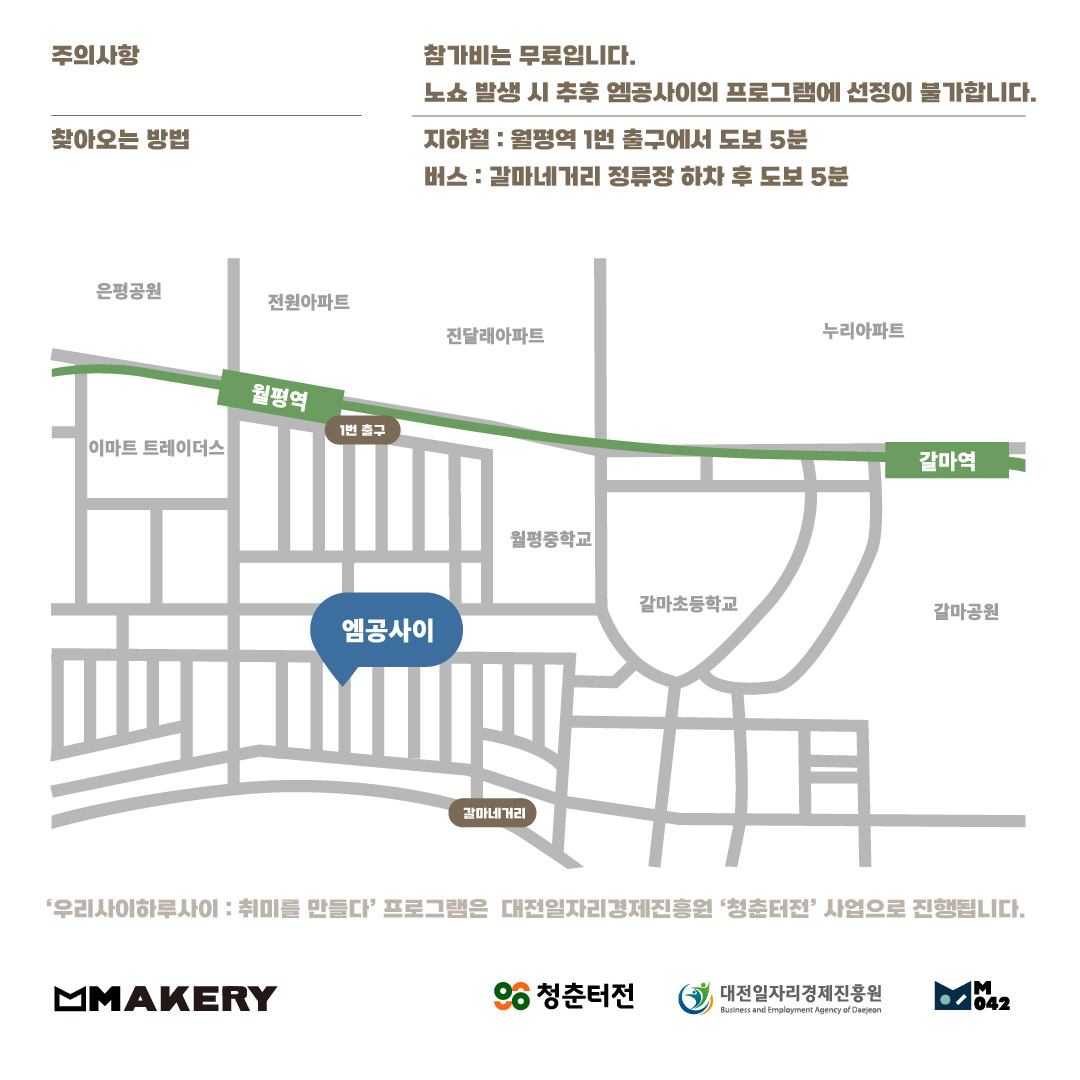 • 참가비는 무료이지만 노쇼발생시 추후 엠공사이의 프로그램에 선정이 불가합니다.