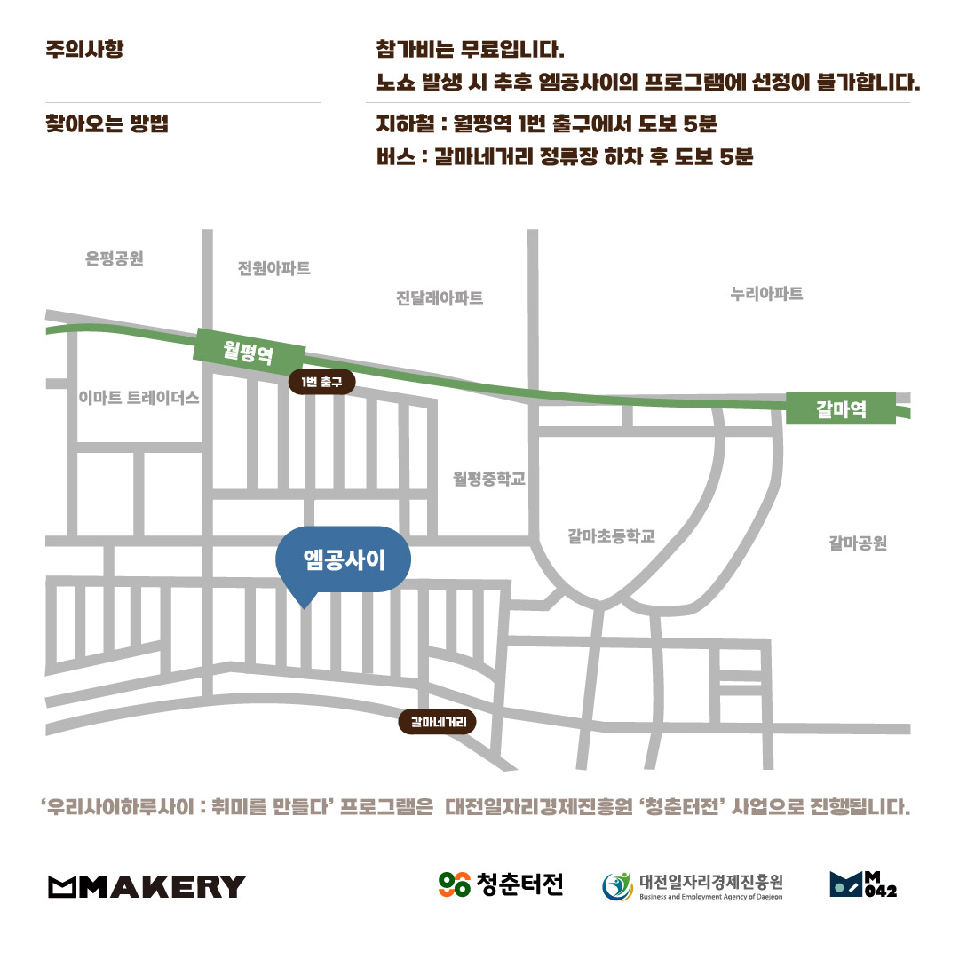 • 참가비는 무료이지만 노쇼발생시 추후 엠공사이의 프로그램에 선정이 불가합니다.