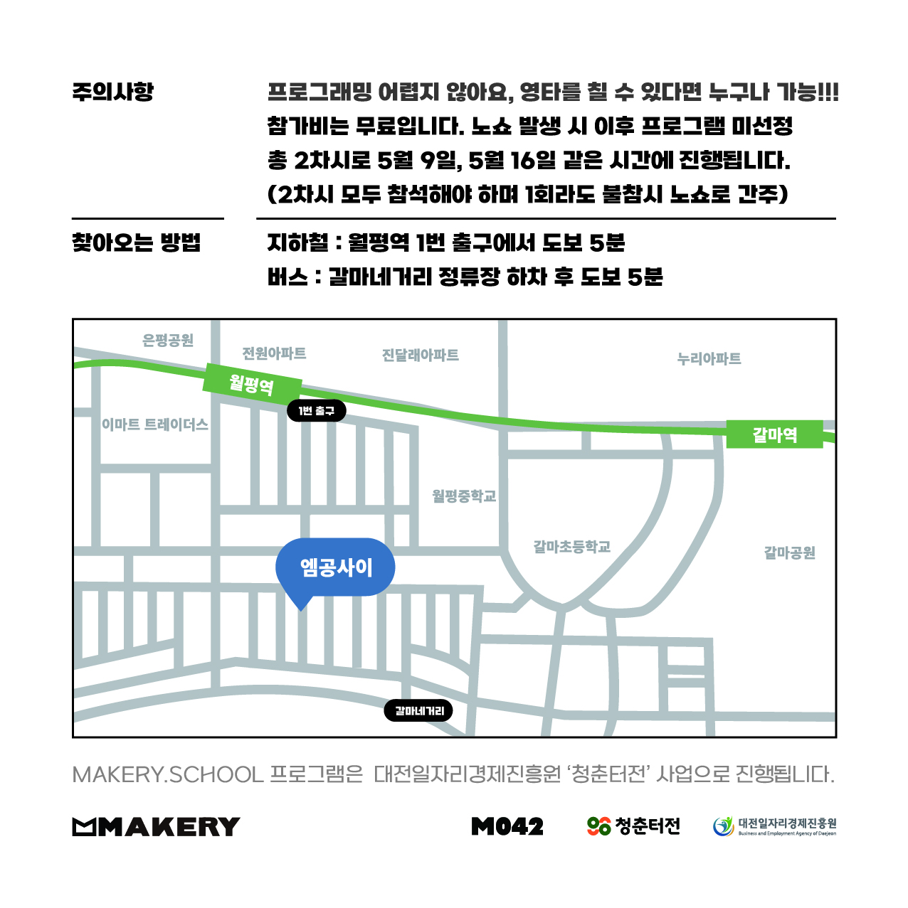 • 참가비는 무료이지만 노쇼발생시 추후 엠공사이의 프로그램에 선정이 불가합니다.