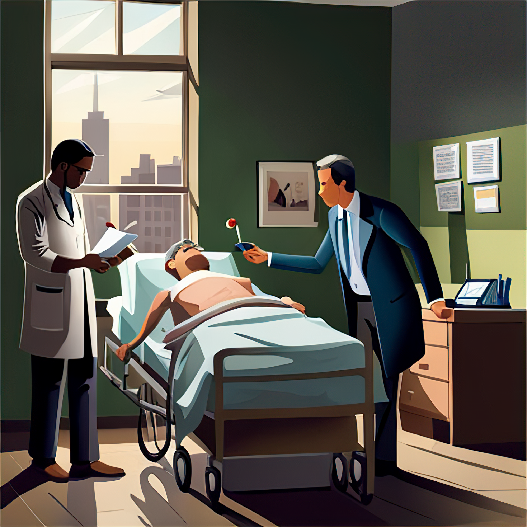 | 저녁 불이 켜진 시간, 병원 안에 환자를 진찰하고 있다. 나는 의사, 환자가 누워있다. 사람들을 치료해주고 싶다. 공부를 열심히. Create an image prompt that portrays the following scene: In a hospital during the evening with the lights on, a doctor is examining a patient who is lying down. The doctor has a strong desire to treat people and is studying diligently. |